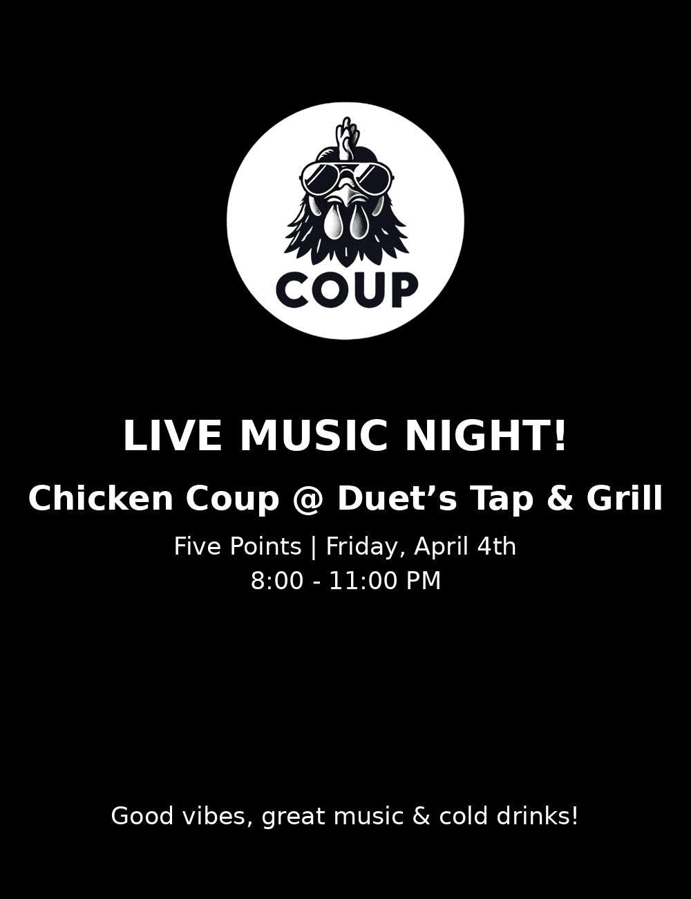 Live music night! Chicken Coup @ Duet's Tap & Grill